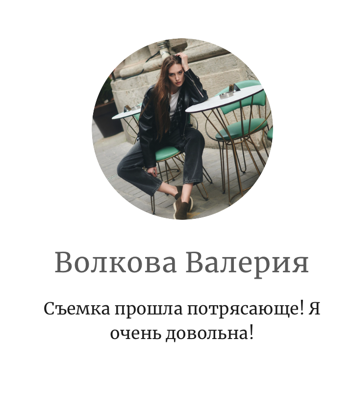 передадим настроение и ваши настоящие эмоции. Я помогу раскрыться перед камерой, даже если вы никогда не снимались и переживаете, что «не умеете позировать». Подскажу, поддержу и буду вести вас на каждом этапе, чтобы съёмка проходила легко и уверенно.