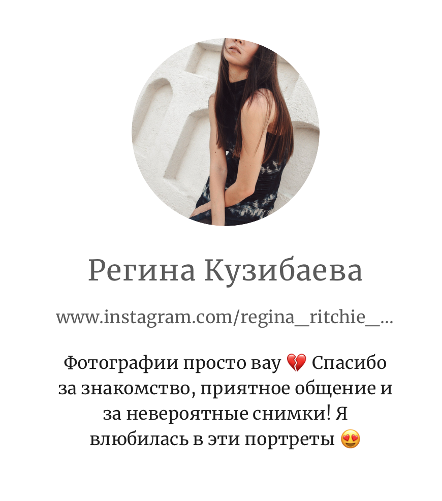 Я с радостью помогу подобрать формат съёмки и отвечу на ваши вопросы. Для связи пишите мне в соцсетях/мессенджерах